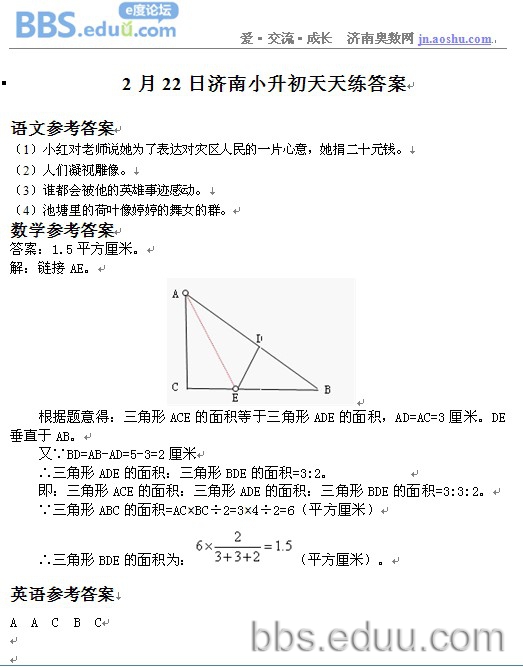2012.2.22济南小升初天天练模拟题答案
