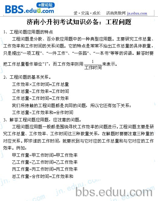 济南小升初奥数知识点:工程问题