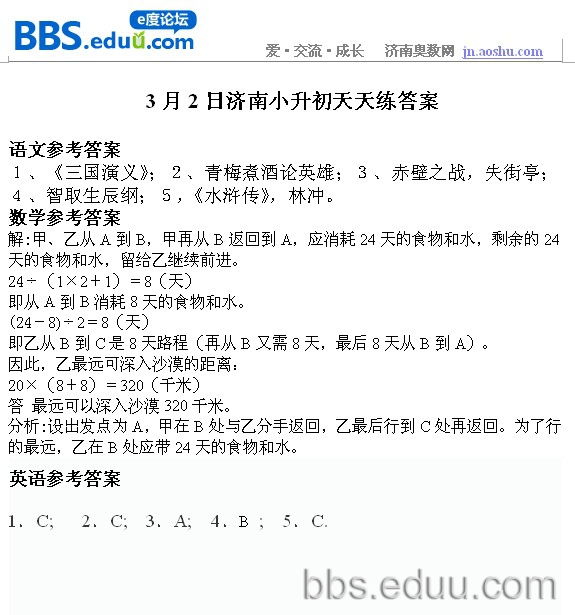 2012.3.2济南小升初天天练模拟题答案