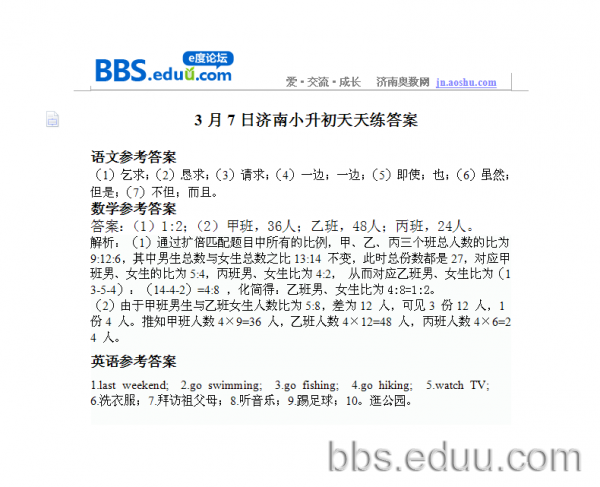2012.3.7济南小升初天天练模拟题答案
