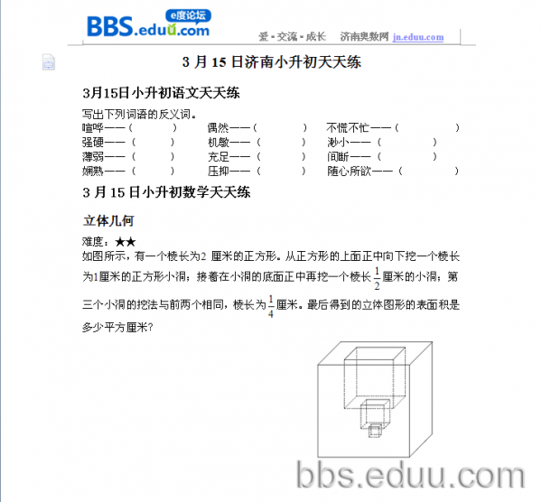 2012.3.15济南小升初天天练模拟题