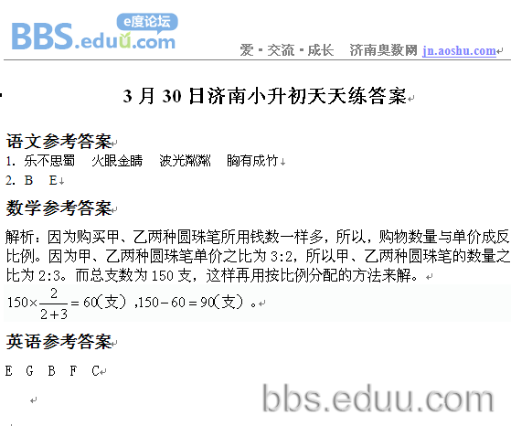 济南小升初天天练栏目每日精选一道题,名师指导讲解,为你升学把脉。