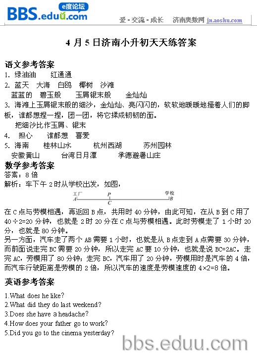 2012.4.5济南小升初天天练模拟题答案