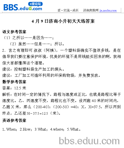 2012.4.9济南小升初天天练模拟题答案