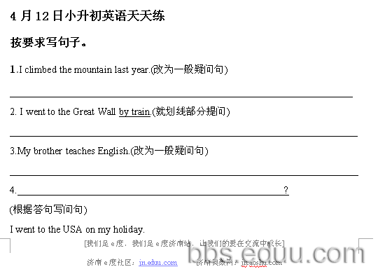 2012.4.12济南小升初天天练模拟题