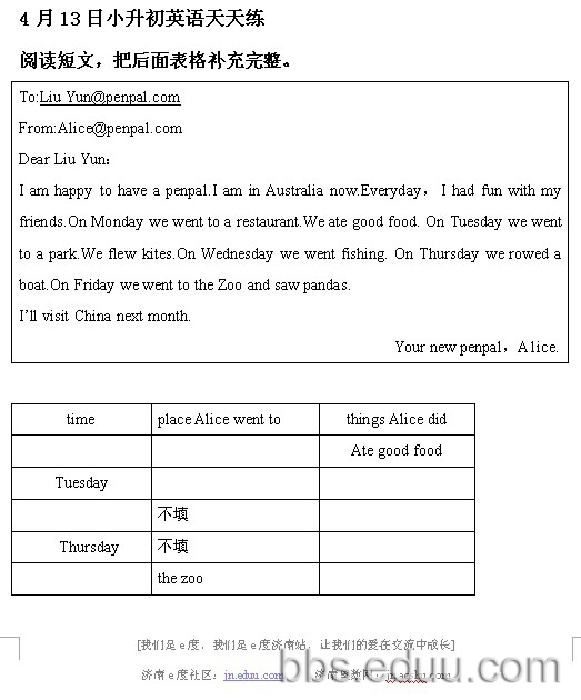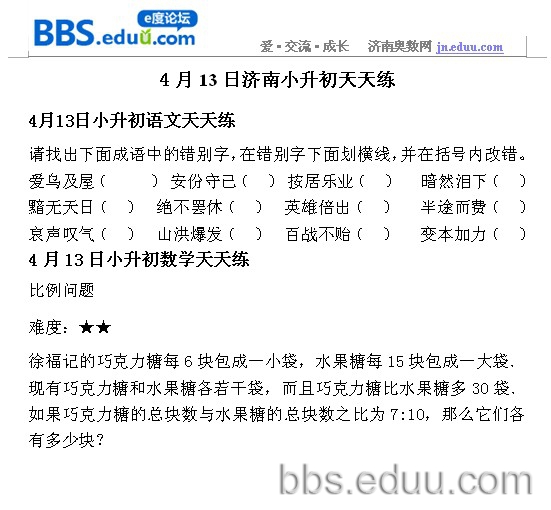 2012.4.13济南小升初天天练模拟题