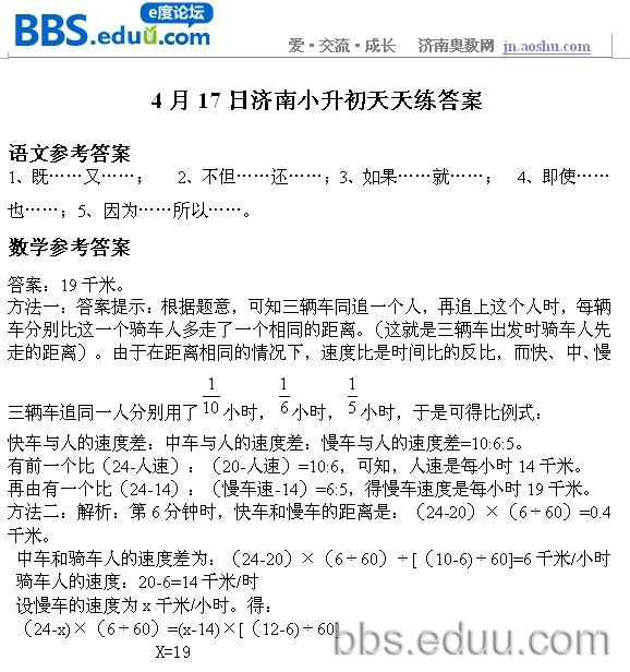 2012.4.17济南小升初天天练模拟题答案