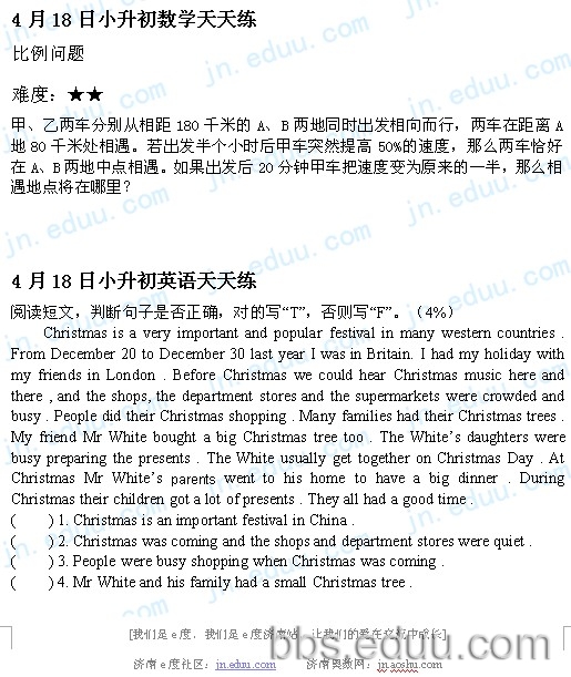 2012.4.18济南小升初天天练模拟题