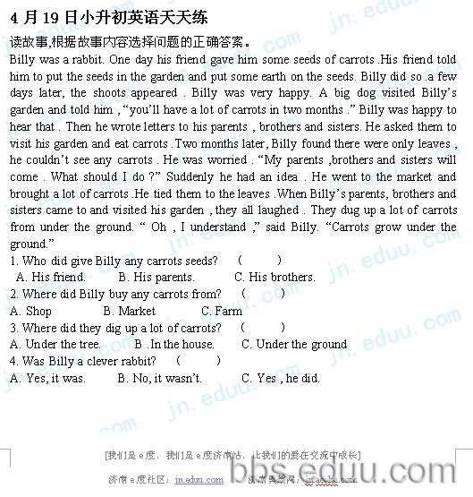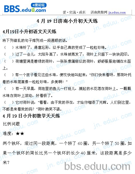 2012.4.19济南小升初天天练模拟题