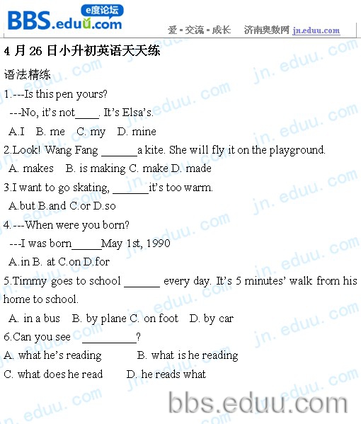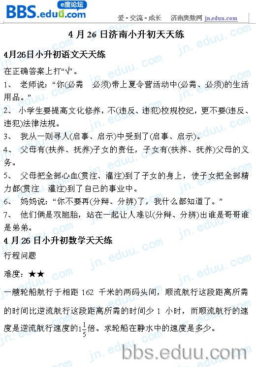 2012.4.26济南小升初天天练模拟题