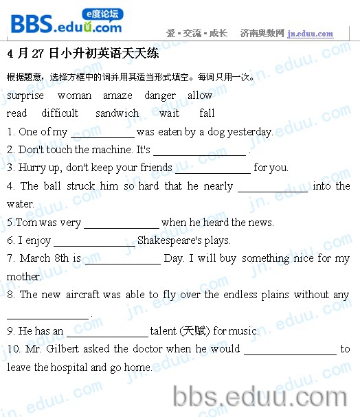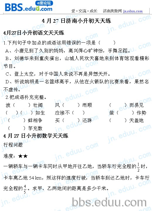 2012.4.27济南小升初天天练模拟题