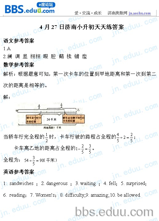 2012.4.27济南小升初天天练模拟题答案