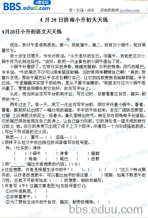 济南小升初天天练栏目每日精选一道题,名师指导讲解,为你升学把脉。