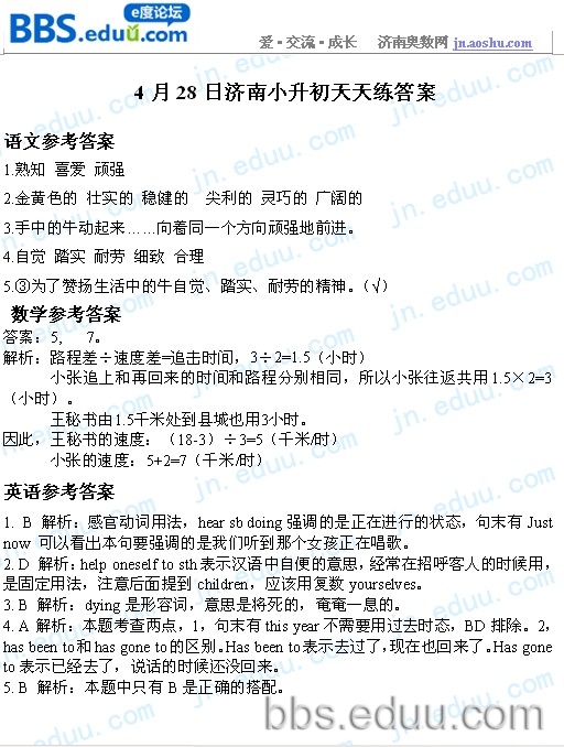 2012.4.28济南小升初天天练模拟题答案