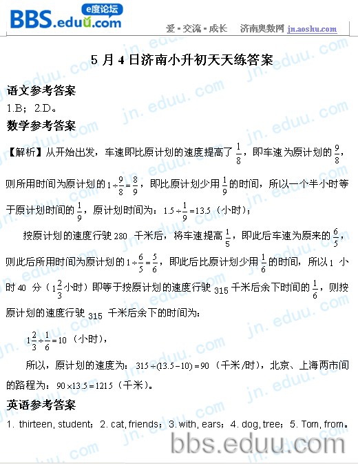 2012.5.4济南小升初天天练模拟题答案