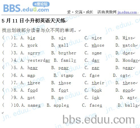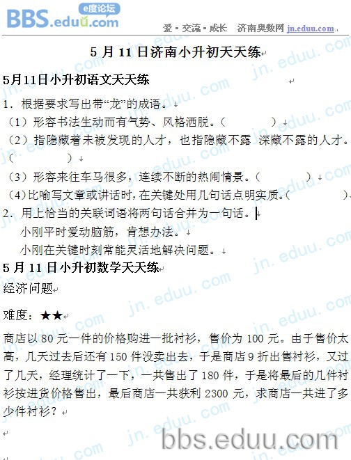 2012.5.11济南小升初天天练模拟题