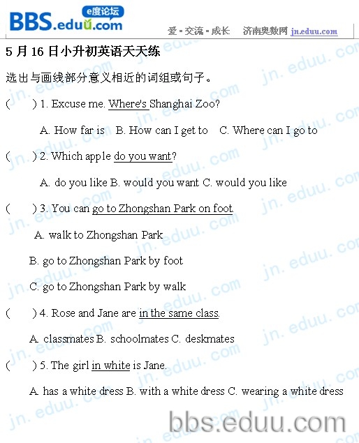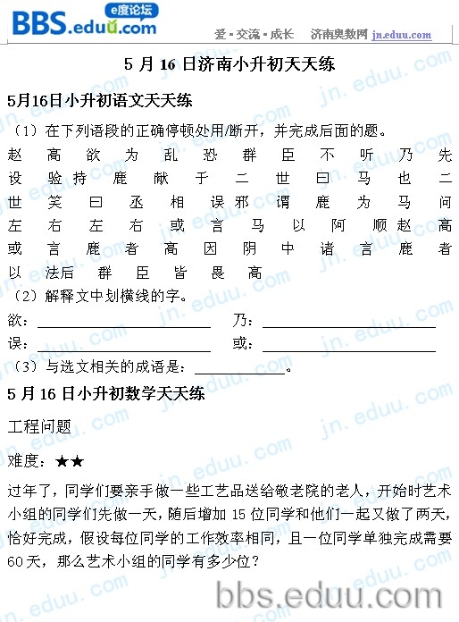 2012.5.16济南小升初天天练模拟题