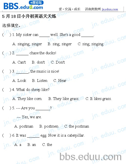 2012.5.18济南小升初天天练模拟题