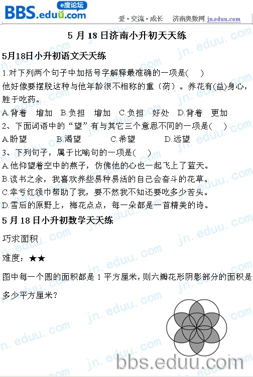 济南小升初天天练栏目每日精选一道题,名师指导讲解,为你升学把脉。