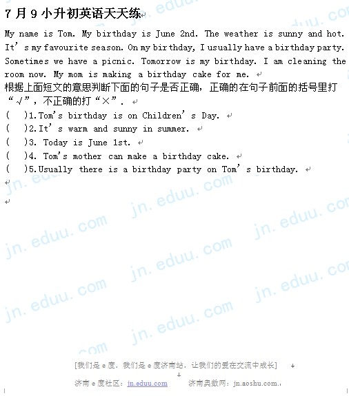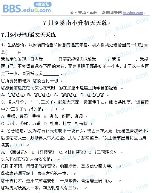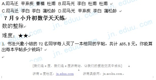 2012.7.9济南小升初天天练模拟题