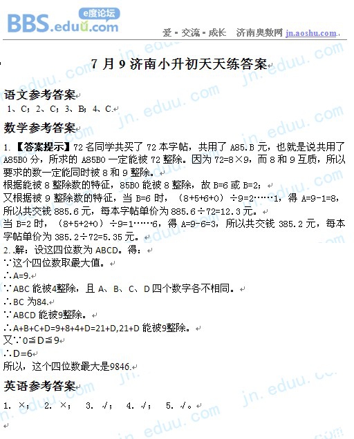 济南小升初天天练栏目每日精选一道题,名师指导讲解,为你升学把脉。