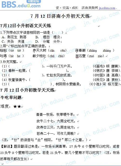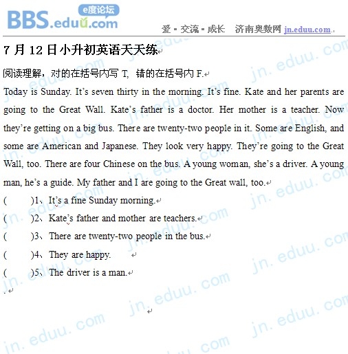 2012.7.12济南小升初天天练模拟题