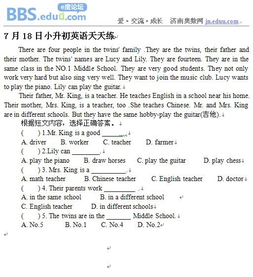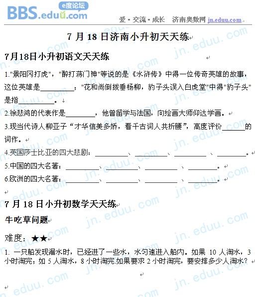 济南小升初天天练栏目每日精选一道题,名师指导讲解,为你升学把脉。