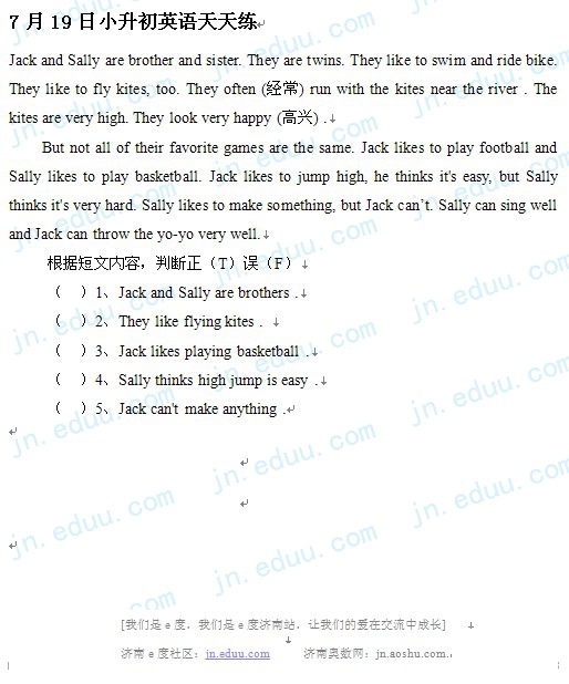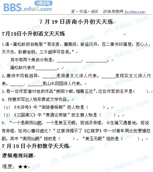 2012.7.19济南小升初天天练模拟题