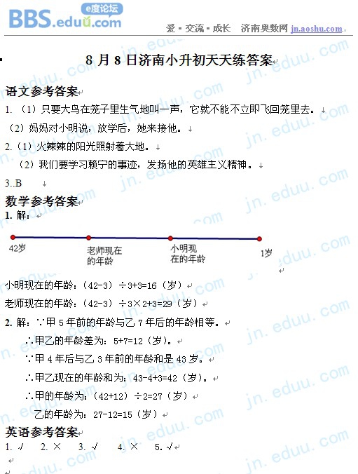2012.8.8济南小升初天天练模拟题答案