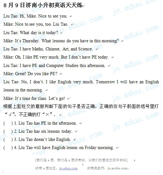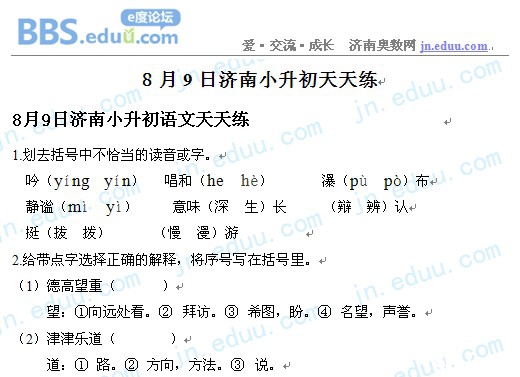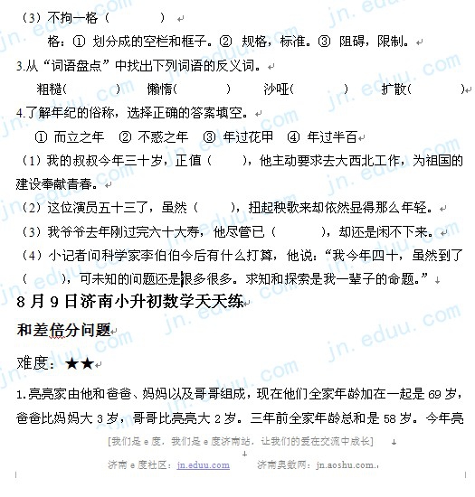 2012.8.9济南小升初天天练模拟题
