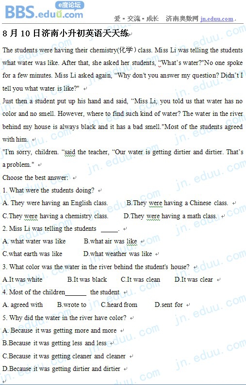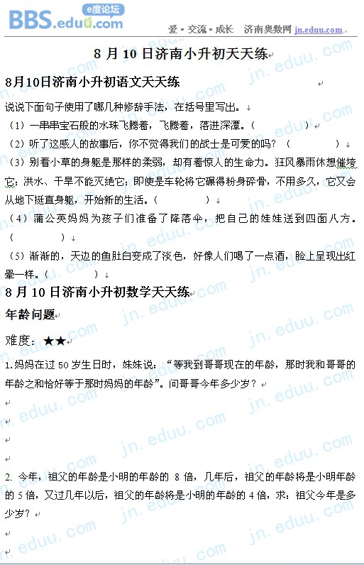 2012.8.10济南小升初天天练模拟题