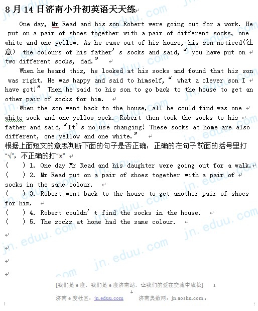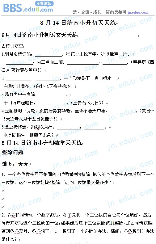 2012.8.14济南小升初天天练模拟题