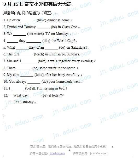 2012.8.15济南小升初天天练模拟题