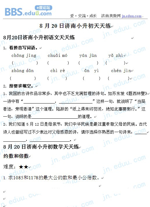 2012.8.20济南小升初天天练模拟题