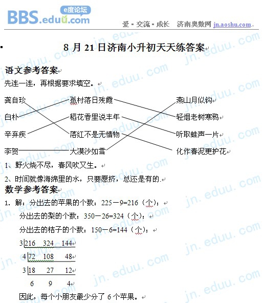 2012.8.21济南小升初天天练模拟题答案