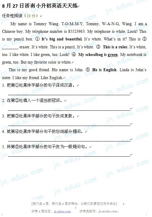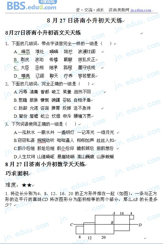 2012.8.27济南小升初天天练模拟题
