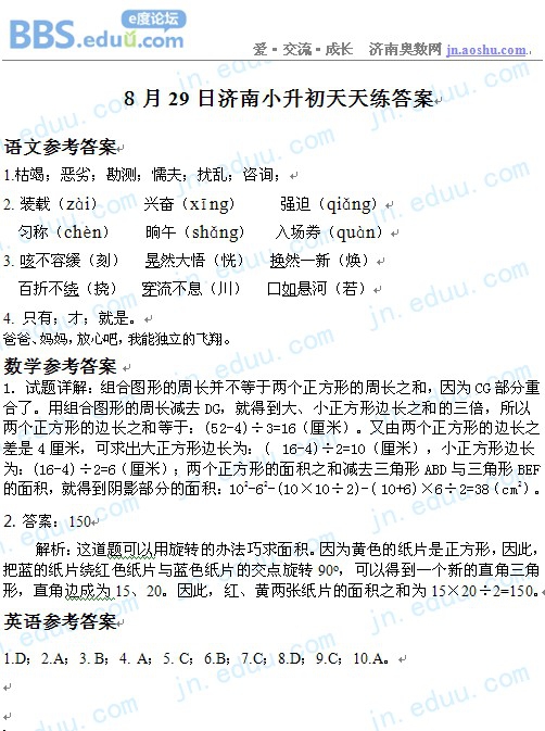 济南小升初天天练栏目每日精选一道题,名师指导讲解,为你升学把脉。