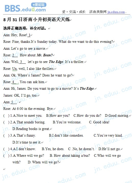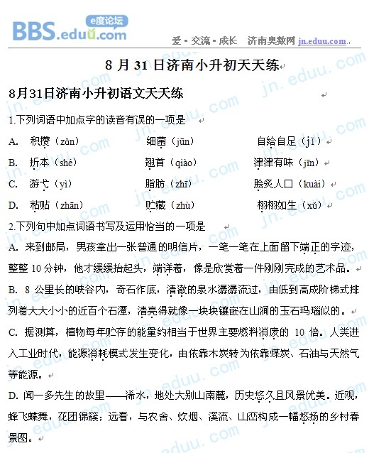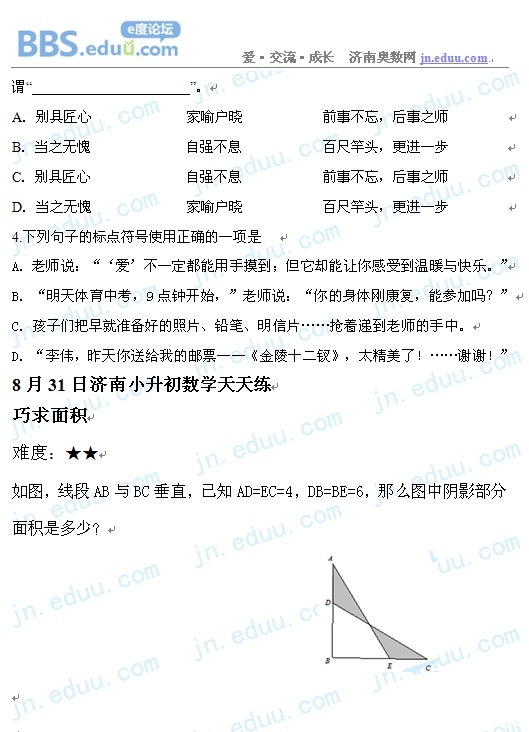 2012.8.31济南小升初天天练模拟题