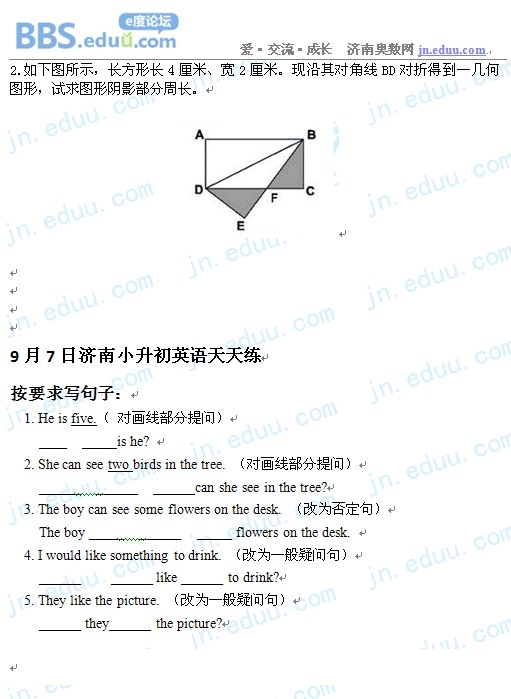 2012.9.7济南小升初天天练模拟题