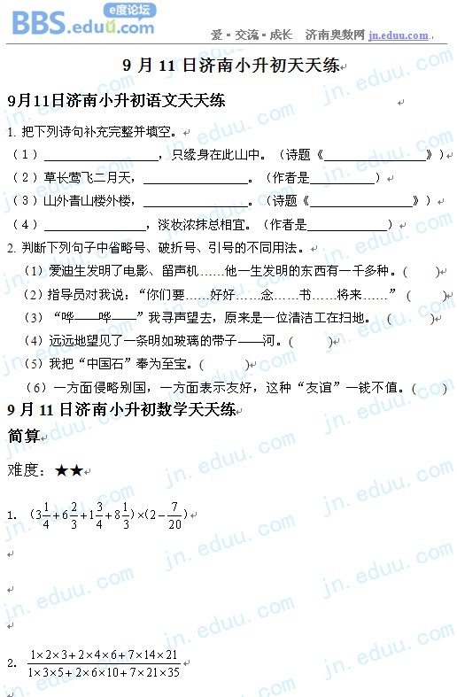 2012.9.11济南小升初天天练模拟题