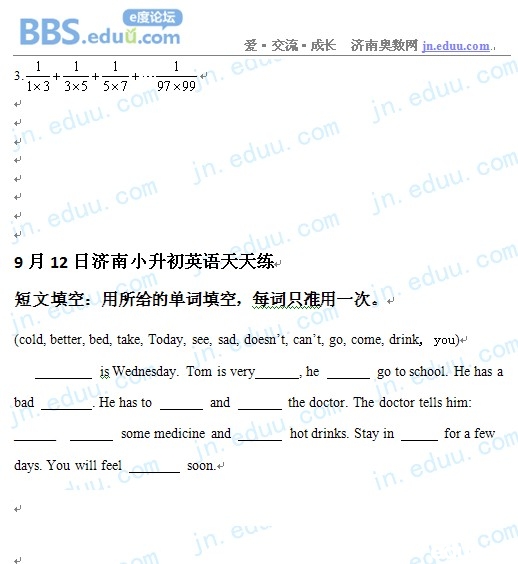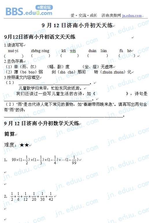 2012.9.12济南小升初天天练模拟题