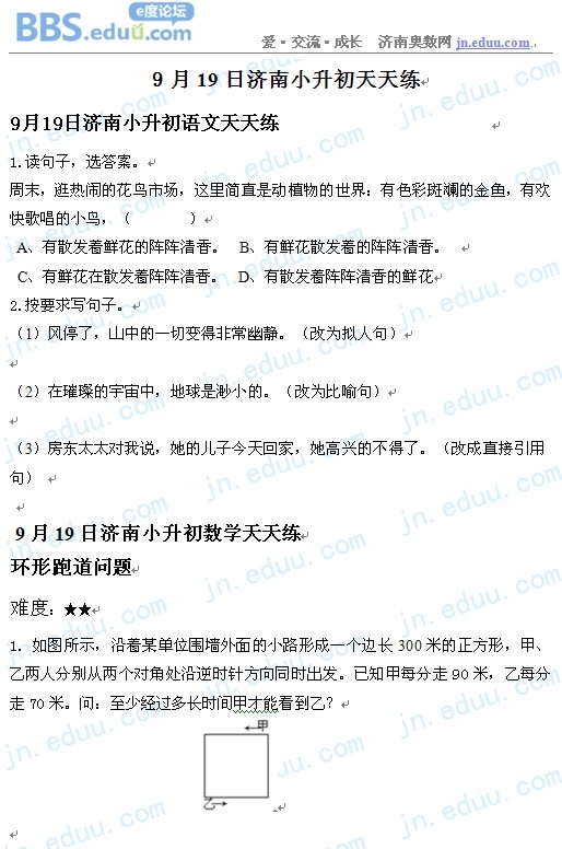 济南小升初天天练栏目每日精选一道题,名师指导讲解,为你升学把脉。