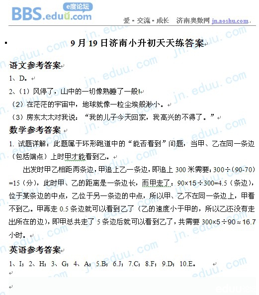 济南小升初天天练栏目每日精选一道题,名师指导讲解,为你升学把脉。