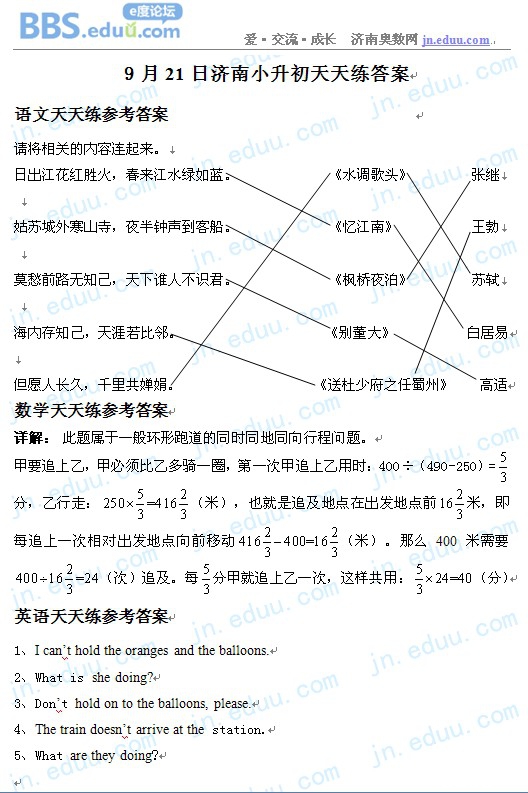 2012.9.21济南小升初天天练模拟题答案