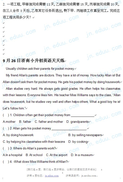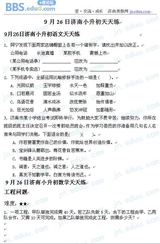 济南小升初天天练栏目每日精选一道题,名师指导讲解,为你升学把脉。