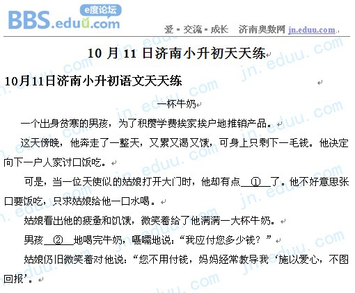 2012.10.11济南小升初天天练模拟题