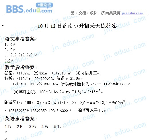 2012.10.12济南小升初天天练模拟题答案
