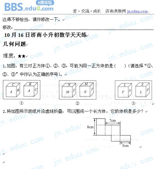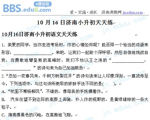 2012.10.16济南小升初天天练模拟题