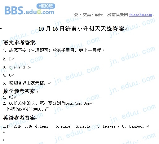 2012.10.16济南小升初天天练模拟题答案