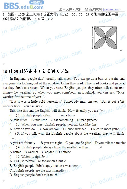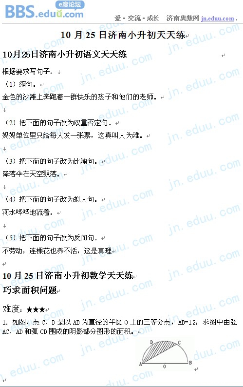 2012.10.25济南小升初天天练模拟题